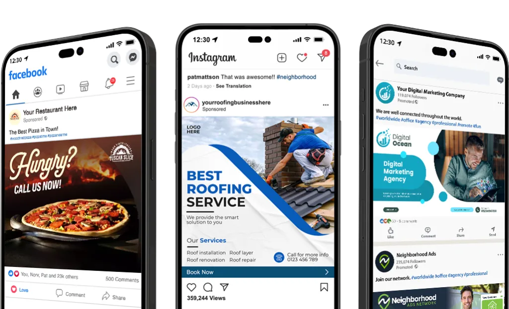 Boost your local presence and visibility through Google ADS or Facebook & Instagram ADS!